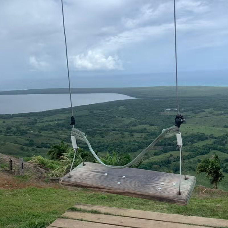 Ubicada entre Miches y Sabana de la Mar, Montaña Redonda es famosa por sus columpios suspendidos sobre el vacío, hamacas flotantes y vistas panorámicas de 360 grados que te dejarán sin aliento.